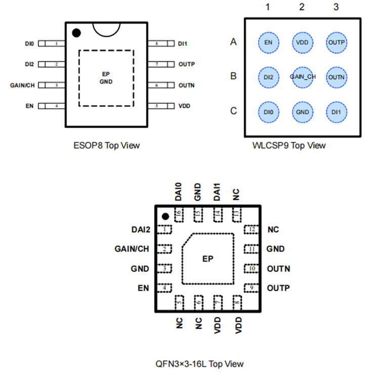 该产品提供WLCSP9、ESOP8和QFN3×3-16L封装。